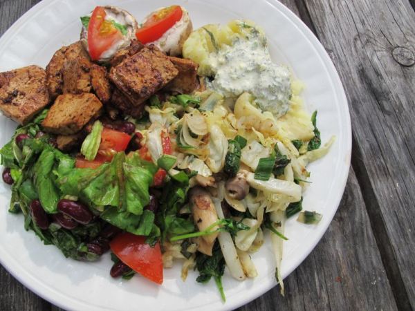 Ruokajutut Mitä vegaani syö mökillä? Kirjoittanut Reissausta ja ruokaa on 14.5.201225.6.2019 Ylhäältä kellon suuntaisesti: tofutti-tuorejuustolla, basilikalla ja tomaatilla täytetyt herkkusienet / uusia perunoita soijajugurtti-tillikastikkeella / murikalla paistettuja kaalia, pinaattia, herkkusientä ja sipulia / kidneypapusalaattia / hyvin marinoituja murikalla paistettuja tofuja. Makealla chilikastikkeela marinoituja tofuja / guacamolea / vihersalaattia / peruna-sipulisalaattia / foliossa kypsennettyjä vihanneksia tofutti-tuorejuuston kanssa. Vihersalaatti soijajugurttikastikkeella / murikalla paistetut kesäkurpitsat / kikhernelisäke (haarukalla hienonnettu hummus) / marinoituja tofuja / uusia perunoita suolasienisalaatilla / tomaatti-sipulisalaatti. Juhannusruokaa: grillitikussa barbecuekastikkeella marinoituja kesäkurpitsoita, paprikoita, herkkusieniä, tofuja, munakoisoa ja sipulia / vihersalaatti / soijanakkeja ja itsetehtyä seitanmakkaraa runsaalla ketsupilla ja kahdella sinapilla / uusia pottuja. Jaa juttu: Jaa WhatsApp palvelussa(Avautuu uudessa ikkunassa) WhatsApp Jaa Facebookissa(Avautuu uudessa ikkunassa) Facebook Tulosta(Avautuu uudessa ikkunassa) Tulosta Jaa LinkedIn:ssä(Avautuu uudessa ikkunassa) LinkedIn Click to share on X(Avautuu uudessa ikkunassa) X Lähetä tämä kaverille sähköpostitse(Avautuu uudessa ikkunassa) Sähköpostitse Jaa Pinterest palvelussa(Avautuu uudessa ikkunassa) Pinterest Jaa Tumblr palvelussa(Avautuu uudessa ikkunassa) Tumblr Jaa Redditissä(Avautuu uudessa ikkunassa) Reddit Tykkää Lataa... Suositellut