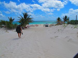 Jäimme bussista pois raunioille kääntyvässä risteyksessä pari kilometriä ennen Tulumin keskustaa. Olin lukenut halvimpien majapaikkojen olevan Tulumin raunioiden läheisyydessä. Käpeksimme sitten kuumuudessa ja löysimme ihan kelvollisen mökin ilman terassia tai omaa kylppäriä, Cabañas Mar Caribe oli paikan nimi. Edellisessä paikassa meille myytiin pimeää ja nuhruista betonimökkiä (vaikkakin palmunlehväkattoista ja perinteisen maya-mökin muotoista) noin 25 eurolla yöltä. Tässä vaiheessa huomasimme, ettei Jukatanin Riviera Mayalta saa edes kaksinkertaisella hinnalla samanlaista tasoa kuin sellaisissa rantakohteissa, joissa olemme aiemmin maailmalla olleet, eikä samanlaista ollut edes saatavilla. Eipä siinä mitään, olisihan se toisaalta ihmeellistä, jos joka puolella maailmaa olisi samanlaista. Minun mielestäni ei ole mitään parempaa, kuin suoraan rannalla oleva mielellään tolppien päälle pystytetty puumökki, jossa on iso veranta. Ei haittaa, jos seinissä on rakoja, ikkunoissa ei ole lasia tai ei tule lämmintä vettä eikä sähköä. Tällaisia ei tuolla aina ollut saatavilla, ja vaikutti siltä, että tällaiset oli kerralla varusteltu niin hifeiksi, ettei meidän hintaluokkaan sellaisia ollut saatavilla. Ehkä jenkit haluavat meidän hintaluokassamme mieluummin tv:n ja ilmastoinnin kuin oman mökin ja terassin? Tai ehkä semmoinen ei vain kuulu meksikolaiseen rakennustyyliin.
