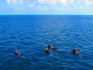 Monilta saattaa jäädä Blue Hole kokematta, koska Caye Caulkerilta on sinne kahden tunnin venematka, joka tuulisella säällä voi olla ikävä kokemus. Siellä ei ole muille kuin sukeltajille kovin ihmeellistä tekemistä. Blue Holen ympärillä olevalla riutalla voi toki snorklailla ja retken kaksi muuta sukelluspaikkaa voivat olla ihan hyviä tai erinomaisia snorklauskohteita. Blue Hole näyttäisi vinhalta taivaalta katsottuna, mutta vedenpinnan tasolla pitää vain fiilistellä että täällä sitä nyt ollaan.