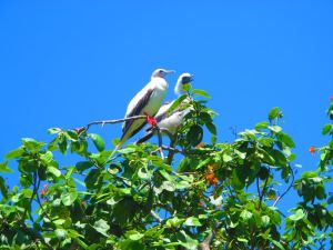 Blue Holen jälkeen suuntasimme etelään ja sukelsimme Half Moon Caye -saaren edustalla. Sen jälkeen pidimme taukoa saarella, joka oli melkoinen paratiisisaari. Siellä oli parin tutkijoita varten olevan rakennuksen lisäksi vain hiekkaa, palmuja ja tiheämpi pikku metsikkö, jossa asui liskojen lisäksi fregattilintuja ja punajalkasuulia, joita pystyi katselemaan puiden latvojen tasolle rakennetulta tasanteelta. Kolmas sukellus oli aquarium-nimisessä (joita on maailmalla varmaan sata…) sukelluskohdassa. En muista olivatko nuo kaksi muuta sukellusta Blue Holen lisäksi kauhean päräyttäviä, hyvää tasoa varmasti silti.