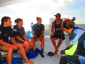 Kävimme sukeltamassa Frenchie´s Divingin kanssa ja taisimme olla ihan tyytyväisiä, mitä nyt tyypit sukelluskaupan tiskin takana eivät oikein olleet mitä parhaimpia asiakaspalvelijoita. Se on jännää, että jos saarella on kuitenkin kilpailua asiakkaista, niin heitä ei kuitenkaan yritetä houkutella saati yrittää palvella siten että valitsisivat juuri tämän sukelluskaupan. Meillä oli lähinnä ongelmia varusteiden saamisen kanssa, tyypit eivät kovin innokkaina antaneet meille koetettavaksi varustevaihtoehtoja. Sukellusohjaajat ja retket olivat kuitenkin ihan ok. Tälllainen toiminta vaikutti olevan ihan perusilmiö Belizessä ja varmaan ihan maailmanlaajuisestikin kuumissa maissa, joissa asuu ihmisiä sen verran että kaikki suunnilleen tuntevat toisensa, ei koeta tarvetta yrittää olla kauhean myyviä.