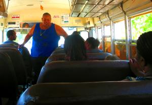 Guest housessa meitä oli vastassa yllä kuvatunlainen tyyppi, jolta onneksi saimme selville, että seuraavana aamuna pihassa käyvä auto myy todennäköisesti vain ananaksia ja appelsiineja. Olimme saaneet kuvan monipuolisemmasta myyntitarjonnasta ja jättäneet siksi tuoretuotteiden ostot lähtöaamuun, jotta ei tarvitsisi kaikkea Placenciasta asti rahdata. Meidän piti sitten ottaa taksi viereiseen Hopkinsin kylään ostamaan vihanneksia ja hedelmiä koko viikon tarpeiksi.