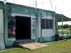 Maya Center oli hiljaisen oloinen paikka. Kylään emme tutustuneet tarkemmin, vaan odottelimme päätien ja suojelualueelle vievän tien risteyksessä kaupalla, jonne voi maksaa pääsymaksun ja ostaa paikallisten tekemiä tavaroita. Sieltä sai tilattua myös taksin suojelualueen vierailukeskukseen, jonne olisi ollut kahden tunnin kävelymatka hiekkatietä, meitä ei rinkat selässä matka huvittanut.