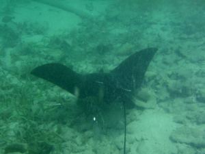 Karibianmeri on erilainen siinä, että maisema veden alla on puna- ja ruskeasävyisempää kuin muualla. En oikein osaa sanoa mistä tämä johtuu, varmaankin korallit ja levät ovat eri värisiä. Kalat olivat aika samannäköisiä, vaikka monista tutuista, joiden nimiä en kuitenkaan tiedä, saattoi olla oma karibialainen versionsa. Merivuokkoja vuokkokaloineen ei kuitenkaan tainnut näkyä vierailemissamme vesissä. Haita, rauskuja ja kilpikonnia oli enemmän kuin muualla olimme tottuneet näkemään. Belizessä sukellukset tuntuivat suorastaan laimeilta, jos tämmöisiä isompia mereneläviä ei päässyt näkemään.