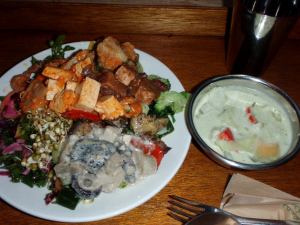 Illallisella kävin vielä Vantran buffetissa, joka salaatteineen oli parempi, vaikkakin kalliimpi valinta, koska lautasellinen maksaa siellä iltaisin 11,90 ja päivällä 8,90 puntaa.