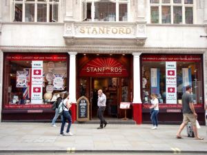 Long Acre -kadulla Leicester Squaren ja Covent Gardenin välissä sijaitsee kolmikerroksinen matkakirjakauppa Stanford´s. Enpä tiennyt etukäteen, että koko kauppa on pelkkiä karttoja, matkaoppaita, -kirjoja ja -tarvikkeita. Olisin ostanut sieltä juomapullon, joka puhdistaa veden sekä kirjan vanhasta Intiaan johtavan hippietrailin nykytilasta, ellei tavaroiden mahtuminen sallittuihin matkatavaroihin olisi antanut jännittää. Sen sijaan ostin Bangkokiin sijoittuvan matkakirjan.