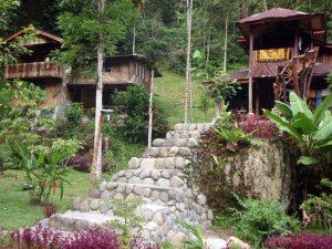 Helpoiten niitä pääsee näkemään luontaisissa olosuhteissa Bukit Lawangissa. Se on ihana (ja turistikoitunut) kylä, jossa voisin viettää viikon metsäretkineen milloin vain. Se sijaitsee joen varrella ja meidän majapaikkaamme kuljettiin pientä riippusiltaa pitkin. Toisella puolella jokea oli suurin osa kylästä ja toisella puolella lähinnä metsää, kuten myös Gunung Leuserin kansallispuisto.