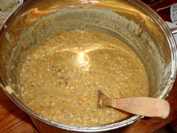 Heti lauantain mannapuuro- ja lettuaamiaisen jälkeen alkoi herneiden keittäminen ja ainesten pilkkominen. Filosofiani hernekeiton kanssa on laittaa siihen paljon mitä vain yrttejä ja tarpeeksi suolaa ja pippuria. Myös valkosipuli on hyvä juttu.