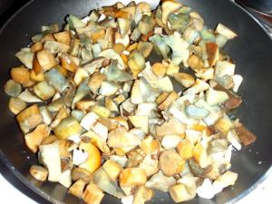 Paista ensin tatit erikseen. Säilytä niistä irronnut neste.