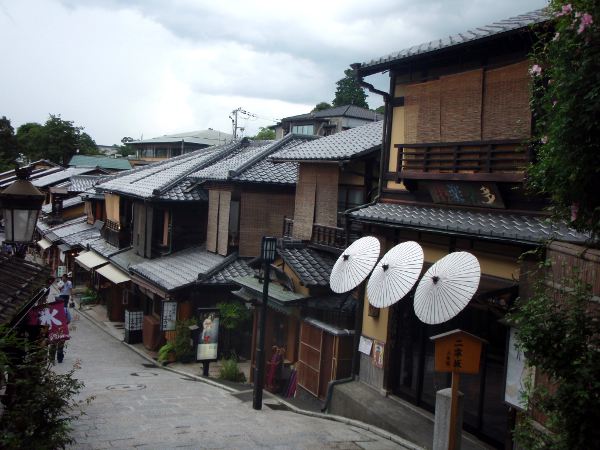 Kioto saattaa olla maailman kaunein iso kaupunki ja Sannen-zaka/Ninen-zaka siellä kaunein katu. Parikerroksisia pikkutaloja, joissa on tummaa lautaa ja bambuverhoja. Olin haltioitunut.