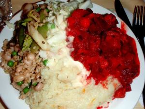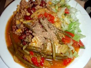 Kasvisbaarin kasvisruoka on ihan eri juttu, koska ne ovat kunnolla maustettuja ruokia. Tämä ei tarkoita, että ne olisivat yhtään tulisia tai maistuisivat aina intialaisille mausteille. Uskon, että lihansyöjätkin tykkäävät enemmän Kasvisbaarin ruoista kuin Unicafen liharuoista.