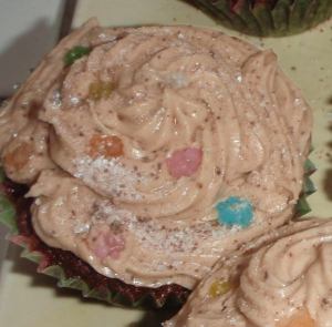 Meidän lopputuloksen ulkonäkö oli kylläkin kaukana dalmatialaisesta ja maustakin puuttui vaniljan edustus, koska Marianne Crushin sijaan jouduimme lähikaupasta ostamaan tavallisia Marianne-karkkeja. Nämä kun laittoi tehosekoittimeen, tulos oli jauhetta palasten sijaan. Siten kuorrutuksesta tuli läpeensä Mariannen makuista vaniljan joukossa olevien minttusuklaasattumien sijaan ja väristäkin tuli vaalean suklainen. Hyvää tuli silti!