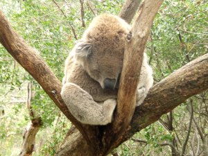 Koalansuojelukeskus oli hieno paikka eukaliptuspuiden tuoksuineen. Paikka oli eläimiä varten, jonne ihmiset saivat tulla niitä katsomaan. Metsään oli rakennettu kävelytasoja, joilta pääsi tiirailemaan puissa nukkuvia koaloita. Jotkut torkkuivat lähellä tasoja, joten niitä pääsi näkemään lähempääkin. Useimmat koalat kuitenkin nukkuvat puissa palleroina, joita on vaikea huomata.