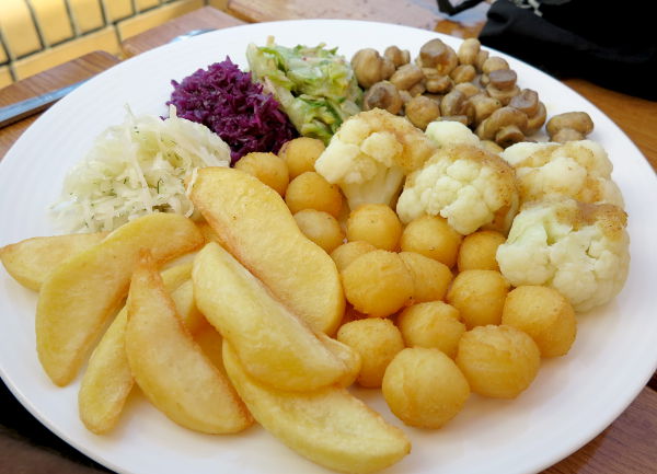 Kaunasista oli aika pitkä ajomatka Puolan Lubliniin. Mitään kilometrejähän meillä ei missään opuksessa näkynyt. Matka pysähdyksineen ja lounaineen kesti ehkä 8 tuntia. Puolassa kävi huvittava tuuri yhden huoltoaseman ravintolassa, jossa yksi annoksista oli jopa kasvislautanen-niminen. Se sisälsi perunakroketteja, lohkoperunoita, keitettyä kukkakaalia, paria salaattia ja paistettuja herkkusieniä. Näitä sai myös salaattilistalta erillisinä.