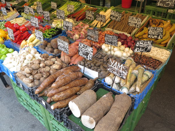 Syödessäni löysin matkaoppaasta tiedon Wienin Naschmarktista, joka oli kahden tien välissä oleva ravintola- ja torialue. Siellä oli kesäiltanakin joitain ravintoloita auki ja meininkiä. Mutta parempi oli käydä siellä seuraavana päivänä, kun kaikki vihannes-, hedelmä-, mehu- ja herkkukojutkin olivat auki. Ehdottomasti minun paikkani. Söimme seuraavana päivänä kadulla olevassa aasialaisessa ravintolassa ja jälkiruoaksi ostin kojusta kallista jakkihedelmää. En tiedä, miten vilkas paikka tuo on talvisin, koska tosiaan sisätiloja ei ravintoloilla ja kaupoilla juuri ole.