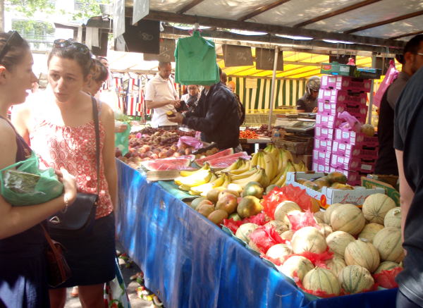 Montparnasselta löytyy Rue Mouffetardin markkinat, jossa vihanneskojuja ei kuitenkaan ole kauhean paljon. Torikuhinan sijaan sinne kannattaa mennä katuelämän takia. Se on katu, jonka varrella on paljon kahviloita, mutta kovin kummoista vaikutusta tämä ei silti minuun tehnyt, tulipahan vaan käveltyä.