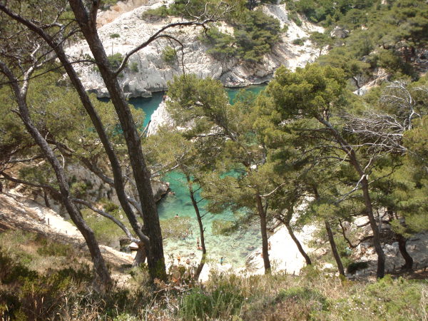Lonely Planetissa oli jotain tietoa Calanquesista, mutta jätin kirjan YesWeCamp-leiriin unohtaen kirjoittaa tiedot ylös. Menin turisti-infoon, jossa minulle kerrottiin bussi (21), jolla kansallispuistoon pääsee, mutta sieltä annettiin väärä tieto bussin lähtöpaikasta. Muutenkin turisti-infossa oli kai totuttu neuvomaan ihmisiä vain ottamaan parin sadan metrin päästä lähtevä turistilautta Calanquesille. Neuvojan mielestä sinne olisi bussilla pitkä matka ja kävelemään lähtiessä pitäisi olla paljon vettä ja kunnon kengät. Ostin vettä kaupasta ja lähdin sandaaleilla liikkeelle. Kai turisti-infossa halutaan turistien ostavan rahalla kaikkea mahdollista eikä menevän itsekseen kansallispuistoon hortoilemaan.