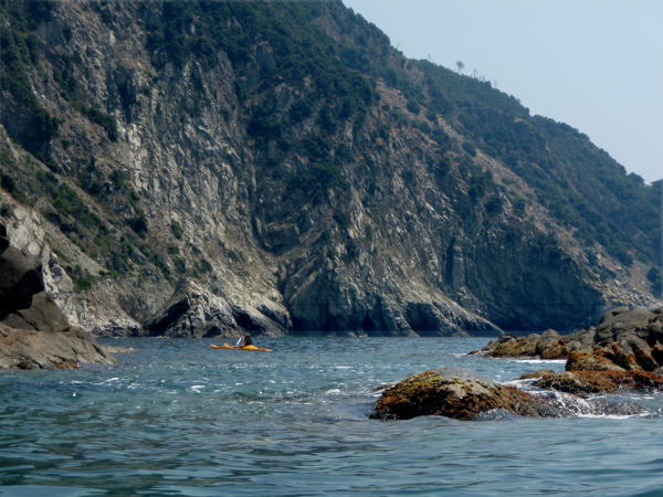 Patikointi on kuitenkin se juttu Cinque Terressä, koska juna kulkee suurimmaksi osaksi tunneleissa, eikä maisemia näe, ellei kipua ylös mäkiä. Toki kylät ovat hieno kokemus heikkojalkaisillekin. Kylien välillä kulkee myös veneitä, joista käsin jylhät mäet ja erikoiset kylät pääsisi näkemään meriperspektiivistä. Me tyydyimme vain melomaan yhtenä päivänä pari tuntia Levantosta etelään, tunnissa ei ehditty lähellekään Monterossoa.