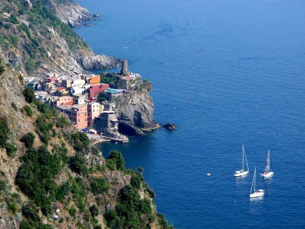 Vernazza oli kylistä ehkä kaikkein hienoin. Valokuvissa Manarola saattaa olla vielä hienompi, kun se on kuvattu mereltä sen tyrskytessä. Mutta katsellen kylän pohjoispuolelta jyrkille rantarinteille rakennettuja taloja ja laitureita, vei Vernazza ehkä ykköspaikan hienoudessaan. Siinä on kompaktisti näkyvissä tunneliin sukeltava junaranta, kirkko, jonkinlainen linnoitus, poukama, laituri, jyrkkiä kallioita ja rinteille tiiviisti rakennettuja taloja.