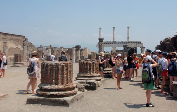 Pompeissa kehittelimme ideaa, että nettiyhteydet on tahallaan säädetty huonoiksi, jotta ihmiset hengailisivat piazzalla iltaisin tietokoneella jumittamisen sijaan. Siten italialainen elämäntapa saadaan säilymään… Sunnuntai-iltana kello 21 aikaan ihmettelimme, kun Pompein keskustan kadut olivat täynnä kaikenikäisiä ihmisiä. Ymmärsimme kyllä, että perjantai- ja lauantai-iltaisin on menoa. Mutta nyt tuntui koko kaupunki olevan liikkeellä.