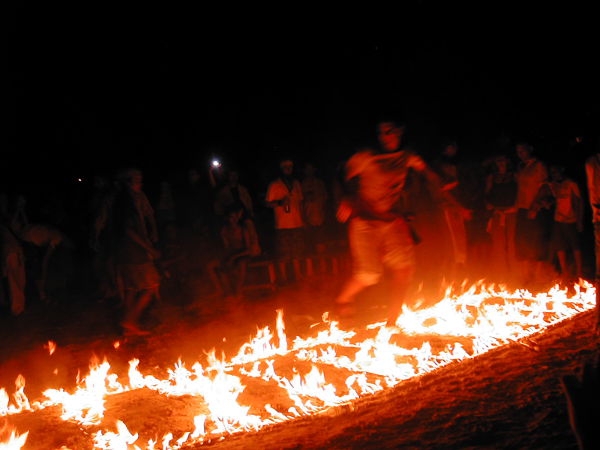Rannan ohjelmana oli paljon eri tuuteista tulevaa musiikkia, tanssia ja mm. tulisien hiilien päällä hyppimistä. Ihan mielenkiinnolla katsoin touhua, mutta kyllästyin aika nopeasti huonoon musiikkiin. Ei oikein ollut mitään tekemistä. Tulipahan nähtyä.