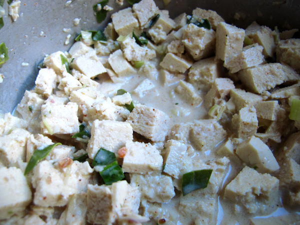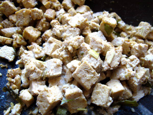 Jos joskus tulee kotoa äkkilähtö ja jääkaapissa on tofupaketti, sen voi laittaa pakastimeen. Tofun koostumus kuitenkin muuttuu pakastaessa, siitä tulee sienimäistä samaan tyyliin kuin liitutaulun sieni. Siksi pakastettu tofu imeekin erityisen hyvin ja nopeasti mausteliemiä huokosiinsa. Joskus muistan ostaneeni kuivattua tofua ja siitä tuli liottaessa samanoloista kuin pakastetusta tofusta.