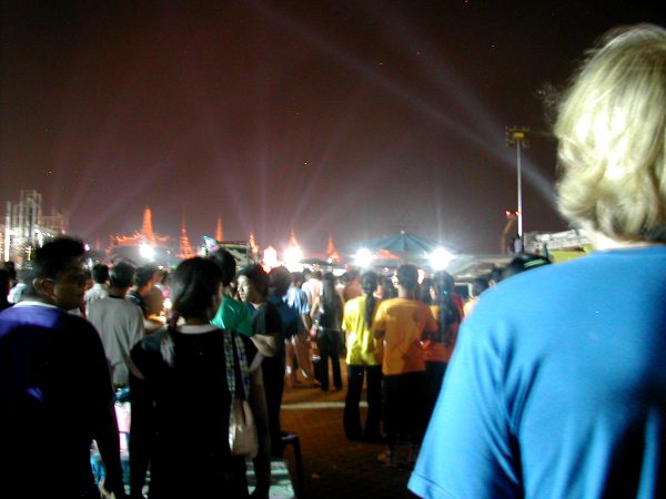 Vuonna 2005 pääsin kokemaan nämä juhlahumut. Oli aikansa eläneestä monarkiasta mitä mieltä vain, on tämä hyvä tilaisuus päästä seuraamaan thaimaalaisten juhlia. Puiston laitoja reunustivat ruokakojut. Thaimaan juhlat ovatkin minun mieleeni, koska niihin kuuluu syöminen ja iloinen meininki. Puistoaukio oli täynnä porukkaa ja erilaisia lavoja, joilla oli mm. kabareeiskelmän esittäjiä. Mölyä tuli myös thainyrkkeilyareenalta, kun ottelua säesti siihen kuuluvat musiikki, joka on mahdotonta säkkipillinsoitolta kuulostavaa kakofoniaa.