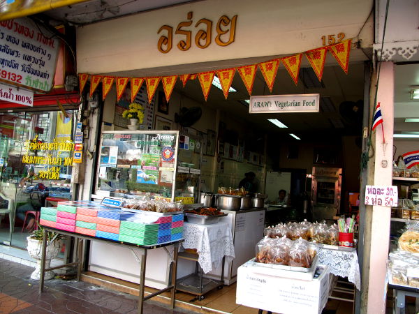 Arawy sijaitsi paikallaan ainakin jo vuonna 2005 kun kävin siellä ensimmäisen kerran. Ihastuin silloin Thaimaan kasvisravintoloiden lihamaiseen antiin. Se on maassa matkaillessa mukavaa vaihtelua proteiiniosuudeksi annoksiin toisinaan saatavalle tofulle ja toreilta tai kaupoista ostettaville pähkinöille.
