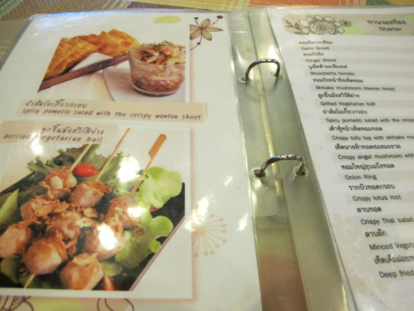 Kun Samsen Roadia kävelee May Kaidee´sin (mielestäni parhaita kasvisravintoloita, josta erikseen juttu May Kaidee´sin kasvisravintolat) ohi, tulee parin korttelin päästä vastaan kasvisravintola Thamna. Listan ruoat ovat hieman kalliimpia kuin muissa kasvisravintoloissa, vähintään rantojen turistiravintoloiden tasoa eli yli 100 bahtia, joten otin vain alkuruoan joka maksoi 90 bahtia (2 euroa ja risat). Suomen hintatasoon verrattuna tämä hintaero ei ole mitään, mutta pitkillä reissuilla tuppaa tulla tarkaksi näissä asioissa.