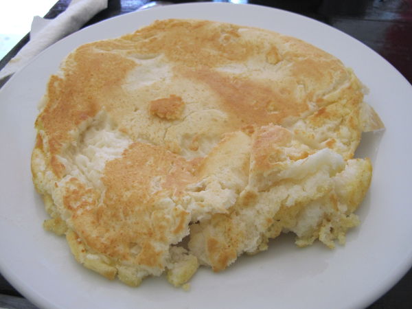 Ihan aamulla ravintolasta saa vain kapeampaa, länsimaista ruokalistaa, eli aikalailla sellaista ruokaa, mitä en halua joutua syömään. Vaikka länkkärit syövät Thaimaassa thairuokaa, niin monille taitaa tuttu aamiainen olla sellaista, jota ilman he eivät käynnisty. Siispä May Kaidee´sissa on paahtoleipää, munia (muutoin paikan ruoissa ei munia käytetä tai ainakin on merkitty selkeästi), puuroa ja pannukakkuja.