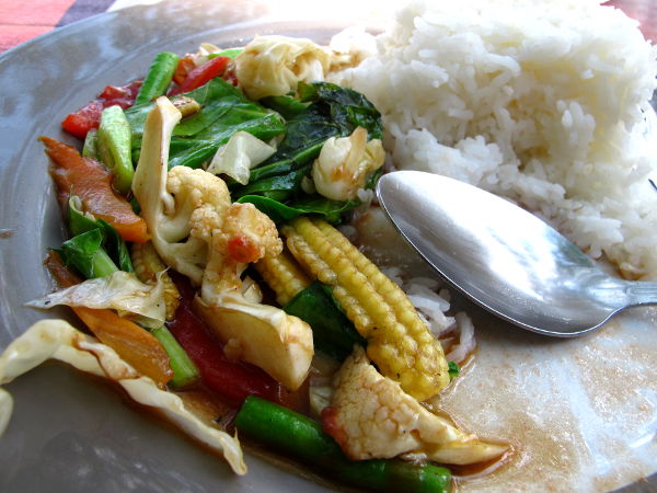 Turistiravintoloidenkin ruoka on Thaimaassa halpaa, harvoin mikään kasvisannos maksaa kolmea euroa enempää turistisimmilla rannoillakaan.