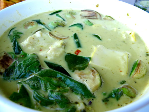 Vihreä currytofu Koh Sametilla maksoi 80 bahtia eli pari euroa. Myöhemmin jouduin huomaamaan, että curryruokien tilaaminen muissa kuin kasvisravintoloissa ei yleensä ole vegaanille sopivaa, koska currytahnoissa käytetään usein mädätettyä katkaraputahnaa ja kalakastiketta.