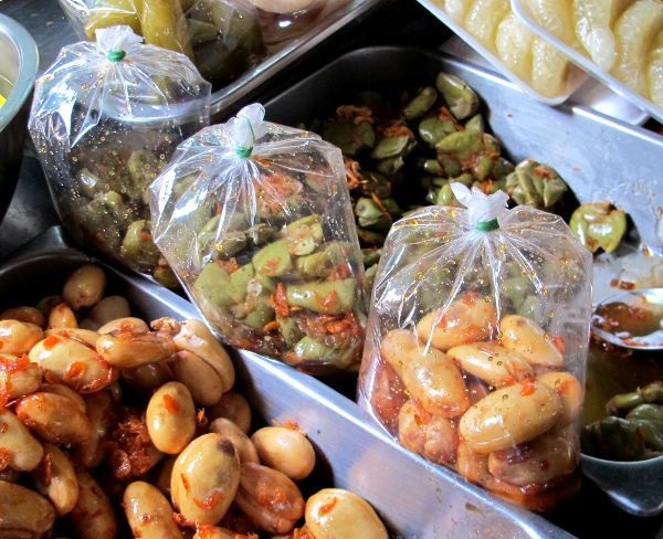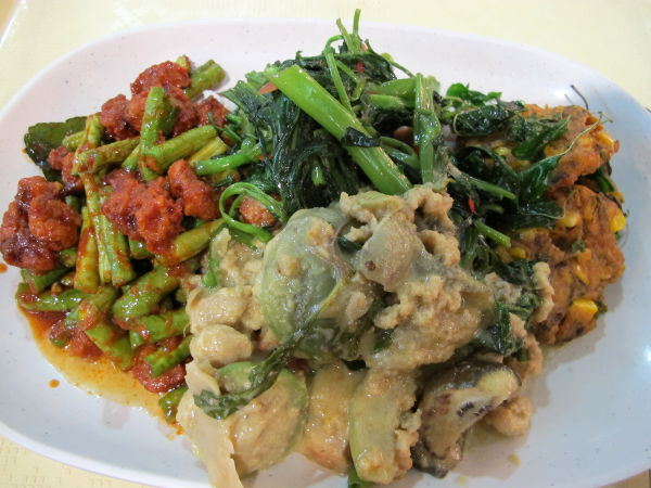 Thaimaalaisten hoikkuuden syy on pienet annokset. Kun menen paikallisiin jay-kasvisravintoloihin saan riisiä keon, mutta soossia lastataan vain pikkuisen. Minä pyydän sitten lisää kastikkeita ja vieläpä montaa eri sorttia.