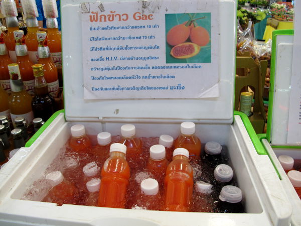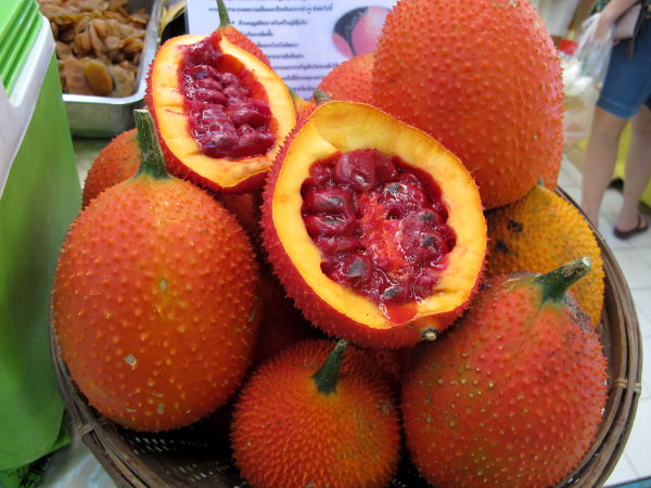 Thaimaassa torilta saattaa löytää gac-hedelmälle omistetun kojun. Pöydällä on näytillä mangon kokoisia oranssinpunaisia hedelmiä, joiden kuori on kumimaisten nystyjen peitossa. Yksi hedelmä saattaa olla näytiksi halkaistu, jolloin voi nähdä hedelmän punaisen ja siemenikkään sisällön.