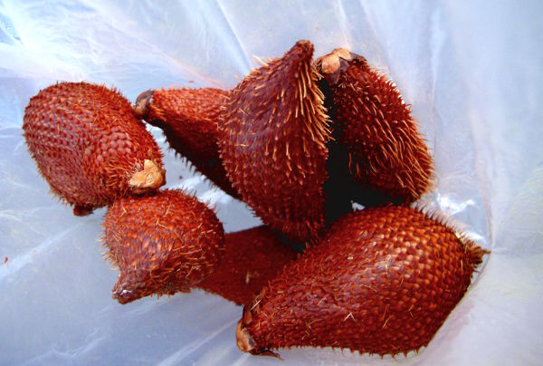 Sitten on kaikenlaisia isompia hedelmiä, joissa on kuoressa nystyjä: durian, jackfruit, kiwano, salak…