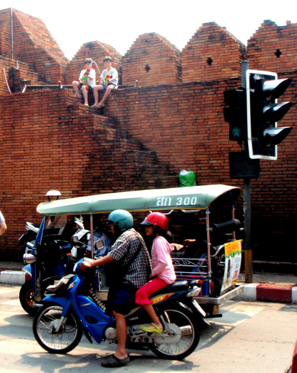 Pohjoinen Chiang Mai on songkran-juhlinnan pääkaupunki, mutta koko maa on yhtä vesisotaa lähes viikon ajan. Virallisesti songkranin pitäisi kestää 13.–15. huhtikuuta. Vesipyssyjen ja selässä kannettavien vesipumppujen myynti aloitettiin jo paria viikkoa aiemmin. Sain ensimmäisen saavillisen vettä päälleni istuessani mopon kyydissä illalla 12. huhtikuuta. Siksi en uskonut, että hauskuutuksesta pitävät thaimaalaiset malttaisivat lopettaa hyviä juhlia ajallaan. Muistaakseni keväällä 2011 Bangkokissa vesisota kesti pidempään. Hämmästyin kun 16.4. Chiang Main keskustassa ei ollut enää mitään songkran-tohinaa.