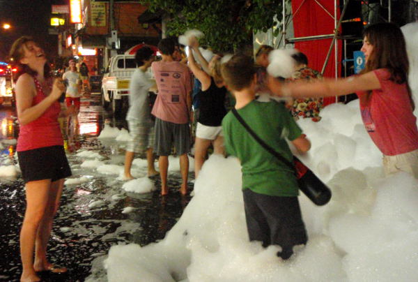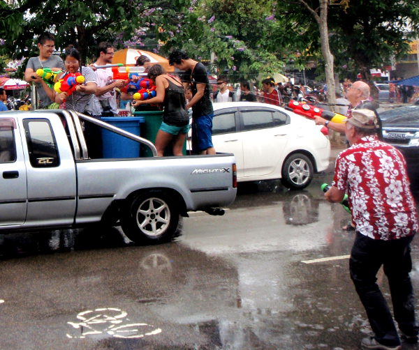 Songkranin aikaan Thaimaassa jännittää mennä ulos. Kynnys hakea illalla kioskilta juotavaa kasvaa, kun matkalla saattaa saada sangollisen vettä päällensä. Rahat, passit ja kamerat on laitettava vedenkestäviin pusseihin ja vaatteiden tarvitsee olla katseen kestävät märkinäkin.