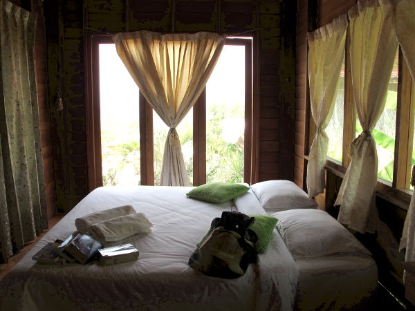 Majoituimme ensin yöksi aivan Pain linja-autoasemaa vastapäätä Duang Guest Houseen (2 hh kylpyhuoneella 300 b). Pain linja-autoasema on hyvin pieni tontti pääkatu Thanon Chaisongkhramin varrella. Eräs vanhempi herra houkutteli meidät kauempana keskustasta olevaan majapaikkaansa (300 b omalla kylppärillä), jonne emme omin toiminemme olisi koskaan sattuneet majoitusta mennä etsimään. Paista saa paljon halvempaa majoitusta kuin esimerkiksi rantakohteista. Joulun aikaan siellä kuulemma saattaa olla täpötäyttä thaituristienkin suunnatessa suosituksi tulleelle paikkakunnalle.
