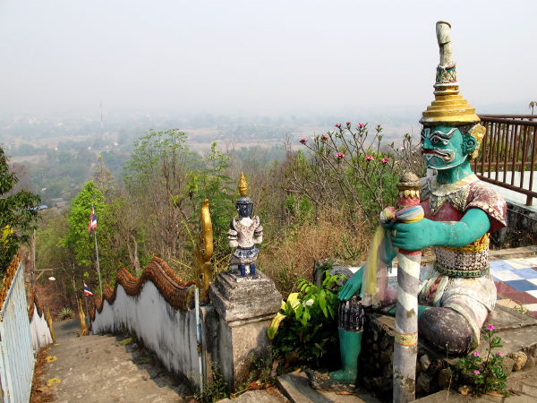Koska Pain keskusta on yhdessä illassa nähty, oli hyvä veto majoittua sieltä kauemmaksi. En muista majapaikan nimeä, mutta se sijaitsi Pain vieressä olevalla kukkulalla aivan temppelille menevien rappusten juurella. Tuon temppelin ison valkoisen buddhapatsaan näkee Paissa kaukaakin.