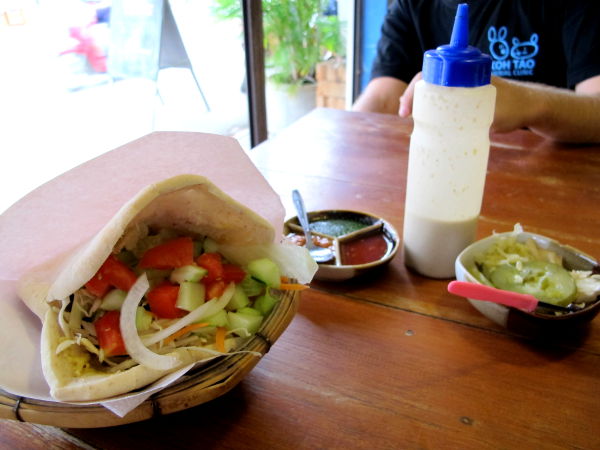 Paissa piti olla israelilaisia ravintoloita, mutta pääsin käymään vain kerran TTK:ssa, joka etsii uusia omistajia. Mama Falafel oli säpissä ainakin toistaiseksi ja monet muutkin ravintolat olivat kiinni. Mutta TTK:n pitafalafel oli huippuhyvä. Thaimaassa pitat ovat olleet kunnollisia leipiä, ei nahkeita känttyjä kuten Suomen kebab-ravintoloissa.