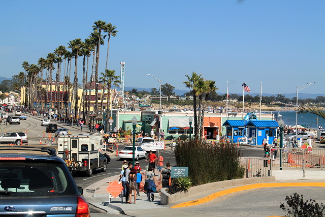 Matkasimme San Franciscosta Montereyhin tietä numero 1, joka ohittaa Santa Cruzin kaupungin, mutta me koukkasimme sen keskustan kautta. Ranta oli lauantaipäivänä vilkas ja parkkipaikan löytäminen olisi varmaan vaikeaa. Jatkoimme joitain kortteleita keskustaan Pacific Avenuelle.