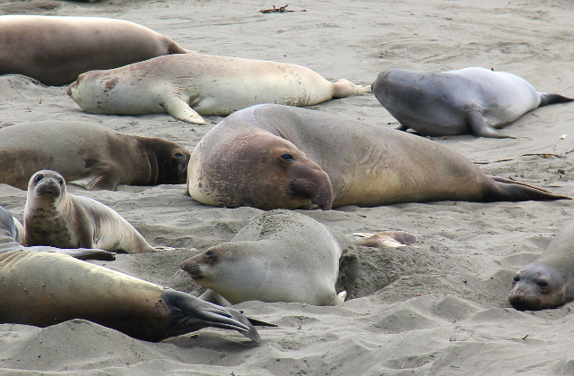Hienona yllätyksenä Kalifornian Big Surin rannikolta löytyi oikein iso merinorsuyhdyskunta Piedras Blancasta. Keväisin niitä näkee San Simeonin pohjoispuolella enemmän kuin syksyisin. Lähellä sijaitsee Big Surin isoin tai ainoa turistikohde Hearst Castle. Mielestäni merinorsut on kuitenkin reippaasti kiinnostavampi asia kuin mitkään ihmisen tekeleet. Merinorsupaikka sijaitsee ihan rantatie 1:n vieressä, eli parkkipaikalle tarvitsee vain kurvata ja mennä siitä ihailemaan otuksia. Friends of the Elephant Seal >>