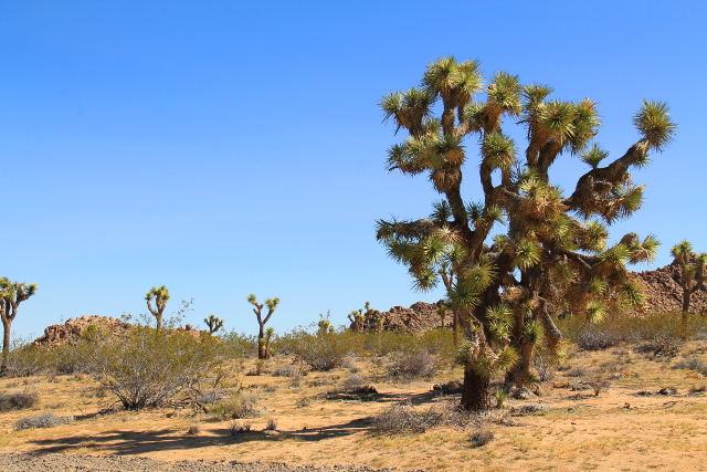Puiston nimikkopuita alkoi näkymään Joshua Treen kylän holleilla käännyttyämme pois Palm Springsiin johtavalta tieltä. Puiston eteläosassahan niitä ei ole, joten joosuanjukkien levinneisyysalue on aika rajallinen. Silti Yhdysvaltojen reissumme loppumatkasta näimme niitä myös Arizonan, Utahin ja Nevadan osavaltioiden raja-alueella matkalla Las Vegasiin ja Kaliforniassa matkalla Death Valleysta Sequoia National Parkiin. Ne vaikuttivat kasvavan joukkioittain, kuten eri kaktuksetkin, eli yhtäkkiä niitä on paljon ja sitten ei enää yhtään.