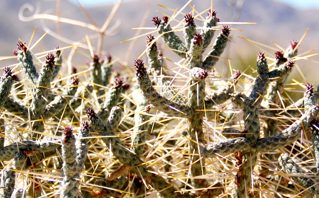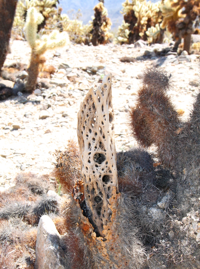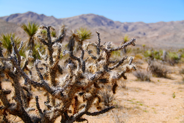 Joshua Treessa alkoivat semmoiset kaktus- ja agavealueet, joita saatiin sitten Arizonassa ajaessa ihailla. Yleensä yhdellä maatilkulla on vain yhdenlaista kaktusta. Kansallispuiston sisällä kun oli Cactus Gardenin kohta, niin siellä oli vain teddybear cholla -kaktusta, jota ei muualla puistossa näkynytkään. Se on semmoista kaktusta, joka todella pistää ja tarttuu, jos sitä hipaisee, eli tosiaan on ohuet terävät päät piikeissä.