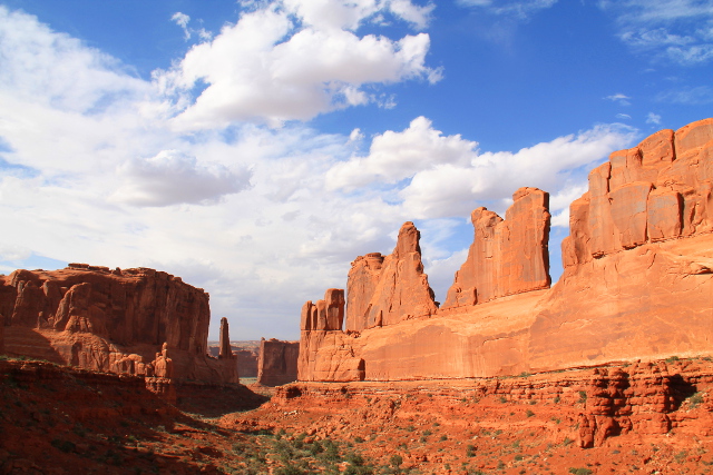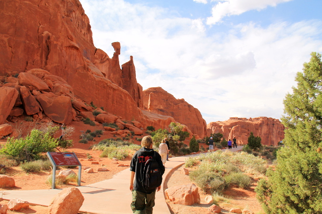 Ensimmäinen pysähdyspaikkamme Archesissa oli tämä lyhyt polku, paikan nimi oli Park Avenue. Asfaltoidun polun päässä avautui hieno seinämänäkymä.