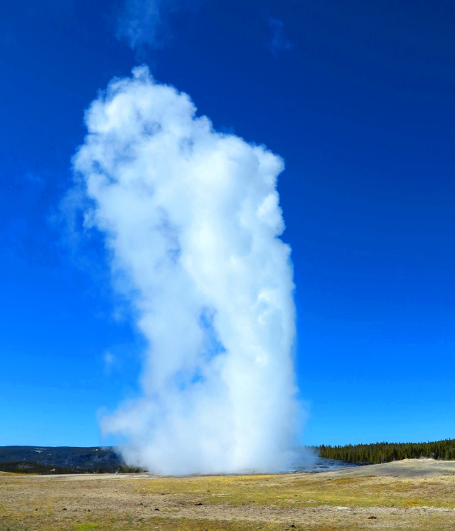 Old Faithfull ei ole Yellowstonen geysireistä suurin, mutta se on ennalta arvattavin. Se suihkuaa usein ja sen tuprautusten ajankohdat pystymään mittaamaan etukäteen.