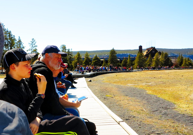 Old Faithful sijaitsee Yellowstonen lounaisosissa Upper Geysir Basinin alueella ja sinne pääsee ajamalla esimerkiksi West Yellowstonen kylästä kuten me teimme. Ajoimme aamulla Idaho Fallsista West Yellowstoneen majoittumaan ja siitä vielä jatkoimme samana päivänä katsomaan Old Faithfulin purkautumista ja sen ympäristön kuumia lähteitä.
