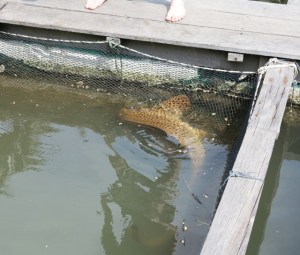 Koh Lanta itäpuolella on mangrovepuisto, jonka Thung Yee Peng Seafood -ravintola on mustalla listalla sen kala-altaiden takia. Tässä on uhanalainen seeprahai.