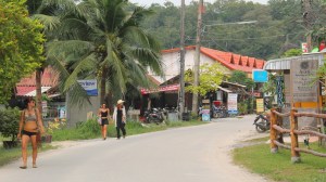 Koh Lantalla sen huomaa selkeästi, miten liikenteen määrä alkaa kasvaa joskus lokakuussa. Joulukuussa kestää jo aikansa ennen kuin pääsee ylittämään kadun. Kesällä taas on liikennekin hiljaista. En tiedä millaista Koh Phanganilla on kesä-aikaan, mutta sen huomasin heti, että monet kaahaavat Phanganilla mopoillaan järjettömän kovaa. Phanganin länsirannikon myötäinen tie on kapeampi kuin Koh Lantalla, tai sitten vain rakennukset ovat lähempänä tietä. Mutta jos Lantalla on epämiellyttävää kävellä tien reunaa, niin varsinkin Phanganilla se tuntuu vaaralliselta.