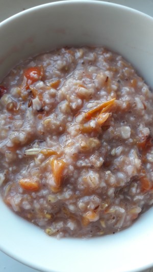 Puuroa pihlajanmarjoilla, Oman maan tuotteita. Itse asiassa Thaimaassa aloin kaipaamaan etenkin kaurapuuroa, joka Suomessa on halpisruoka, mutta Thaimaassa kaurahiutaleet ovat tuontitavaraa eivätkä erityisen halpoja.
